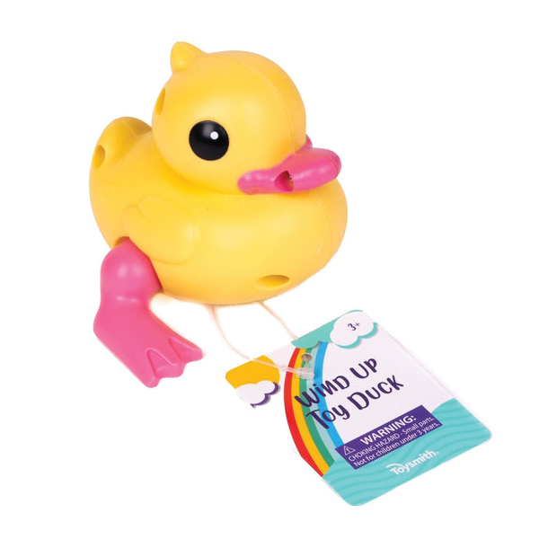 Make a splash with Toysmith's wind-up toy duck. Twist the wind-up mechanism on the bottom of the duck and then place it right side up in the water and watch it swim around. The duck is made of plastic and is yellow with a pink beak and feet. Place it on a surface after winding and it will crawl across the ground. Also available in turtle, shark and Flamingo. Collect them all and have them race.