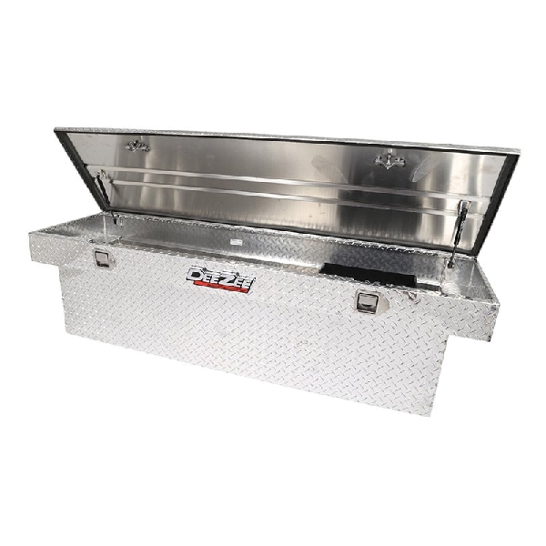 The bigger the project the more tools you need to bring along for the job. You need a capable tool box to keep your tools secure and protected for the ride. The Dee Zee Red Label single lid crossover tool box with its heavy-duty brite-tread aluminum construction is the right tool box for the task. Just because mother nature isn’t cooperating, doesn’t mean you get the day off. You still have to pack your truck, load your tools and head to the job site. Just another day in the office. It’s days like this you’ll appreciate the weather-resistant features of the Dee Zee Red Label single lid crossover tool box. Built tough to endure a lifetime of abuse. When you work like we do, it goes without saying you’re going to have to get your tools out of the box quite a bit. You want an easy operating and lasting lid construction that will stand up to years of continued use. The Dee Zee Red Label single lid crossover tool box features a Crown style lid with a full pan double-V stiffener for superior rigidity. No wobbly lids here folks. You also get Lockable stainless steel paddle or pull handles, dampened gas shocks and self-adjusting strikers to ensure opening and closing the box remains smooth and effortless. The job site can get messy, but that doesn’t mean your truck box needs to. Our removable plastic tray is the perfect way to keep smaller hand tools and other items from getting buried below larger tools and easily mounts to the top of box for quick access.