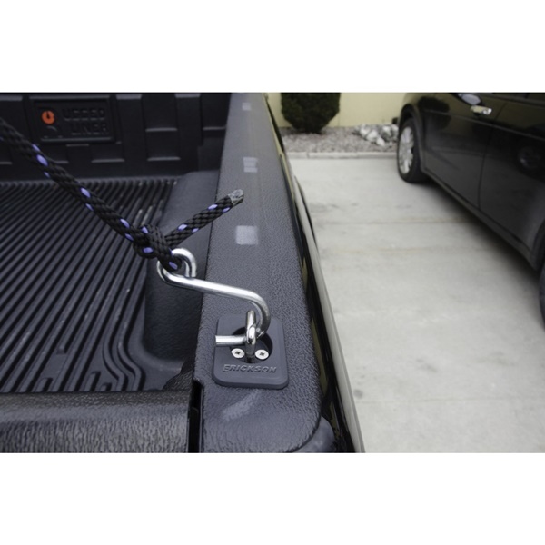 Erickson Retractable Anchor, Heavy-Duty, Bull Ring, Specifications: 1000 lb Capacity, Stainless Steel, Black, Suitable for: Ford F Series 1998 to 2014, Ford Rangers 1993 to 2012, Chevy/GMC 2000 to 2013, Dodge Rams 1995 to 2015