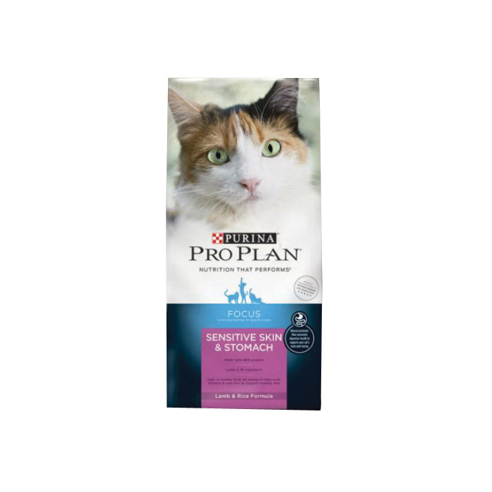 Pro Plan FOCUS Cat Food, Adult, Dry Form, Lamb, Rice Flavor, 16 lb Net Content, Special Diet: High-Protein, Ingredients: Lamb, Rice, Corn Gluten Meal, Dried Egg Product, Soy Protein Isolate, Chicken Meal, Fish Meal, Soybean Meal, Wheat Flour, Animal Fat Preserved with Mixed-Tocopherols, Animal Liver Flavor, Oat Meal, Soybean Oil, Inulin, Potassium Chloride, L-Lysine Monohydrochloride, Calcium Carbonate, Phosphoric Acid, Salt, Zinc Proteinate, Taurine, Vitamin E Supplement, Choline Chloride, Manganese Proteinate, Dl-Methionine, Ferrous Sulfate, L-Ascorbyl-2-Polyphosphate (Source of Vitamin C), Niacin, Copper Proteinate, Vitamin A Supplement, Calcium Pantothenate, Thiamine Mononitrate, Riboflavin Supplement, Vitamin B-12 Supplement, Pyridoxine Hydrochloride, Folic Acid, Vitamin D-3 Supplement, Calcium Iodate, Biotin, Menadione Sodium Bisulfite Complex (Vitamin K), Sodium Selenite, Nutritional Information: 40% Crude Protein, 17% Crude Fat, 4% Crude Fiber, 12% Moisture, 1.6% Linoleic Acid, 250 mg/kg Zinc, 1000 IU/kg Vitamin A, 400 IU/kg Vitamin E, 0.15% Taurine, 2.3% Omega-6 Fatty Acids
