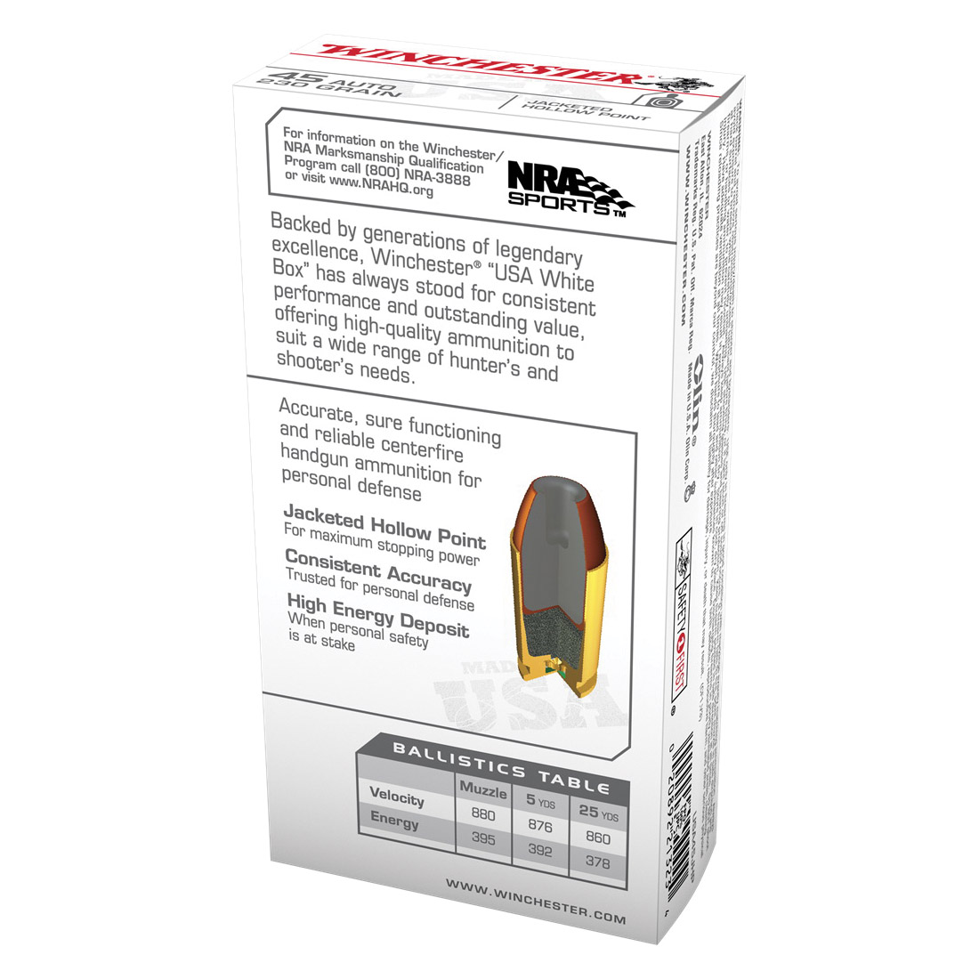 Backed by generations of legendary excellence, Winchester "USA White Box" stands for consistent performance and outstanding value, offering high-quality ammunition to suit a wide range of hunter's and shooter's needs.