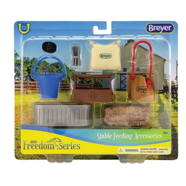 Breyer Horses Stable Feeding Accessory, Design/Theme: Horse, Age Group: 4 years and Up, Plastic, Number of Pieces: 8, Includes: Bag of Feed, Bucket, Curry Comb, Feedbag, Grooming Tote, Hay Bale, Scoop, Water Trough