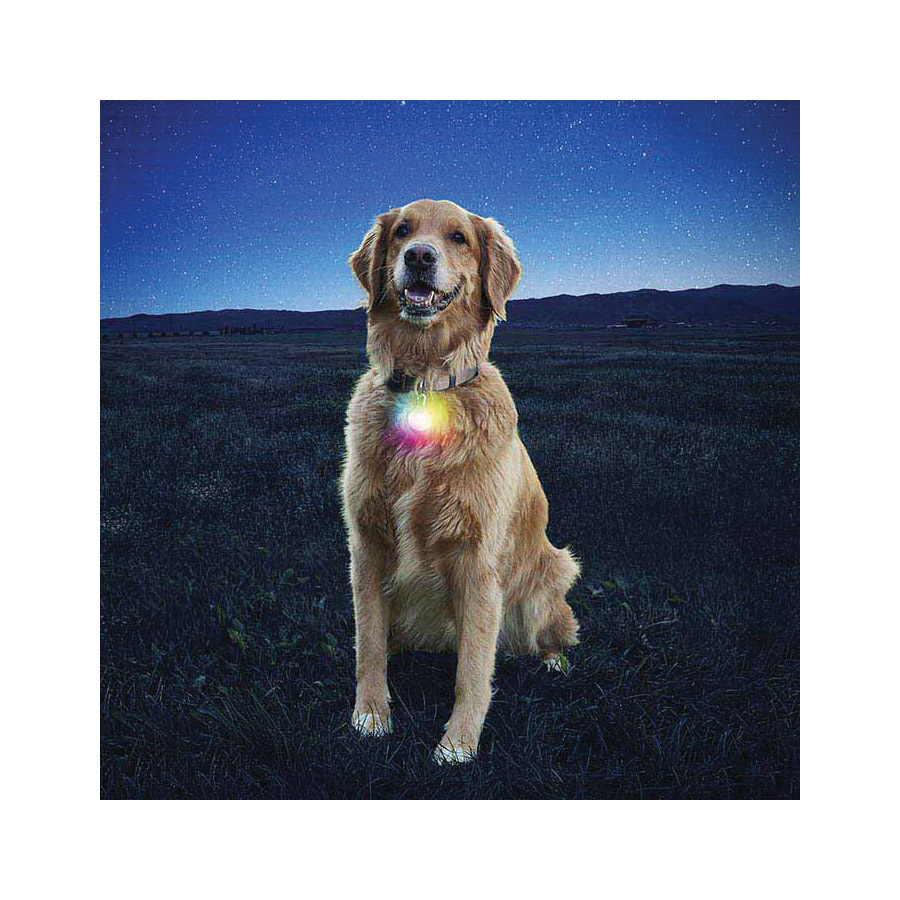 This colorful, clippable collar light keeps pets seen and safe at night. Featuring a built-in carabiner clip, this long-lasting, weather-resistant LED easily attaches to your pet's collar. The SPOTLIT® collar light makes everything from nighttime walks to camping simpler and safer. Designed for all your adventures, the SPOTLIT® is highly weather-resistant and easily clips onto the D-ring of your pet's collar or harness. Available in a variety of colors, this durable collar light makes it easy to keep track of multiple pets in the dark. A simple push of a button lets you switch from a constant glow mode to an attention grabbing flashing mode. Replaceable batteries included.