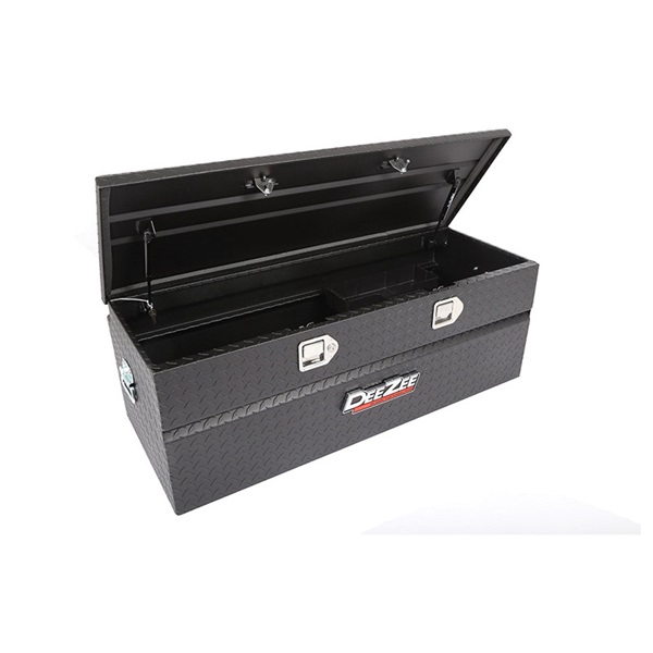 There are times when you need a box that's as comfortable in your truck bed as it is in your garage. If you're looking for a rugged yet versatile storage option that you can transport securely in your truck bed and then move right with you to your work area, the dee zee red label utility chest is the perfect solution. Constructed of tough 0.056 brite-tread aluminum with internal bends and durable v-pan lid stiffener, our red label utility chest is designed to handle the abuse of daily work on the job.